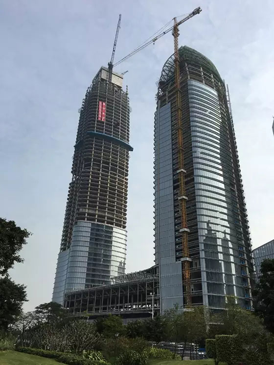 設計高度311米。它和去年12月冠頂合攏的洲際酒店塔樓一起,勾勒出一抹優美的珠江空際線。